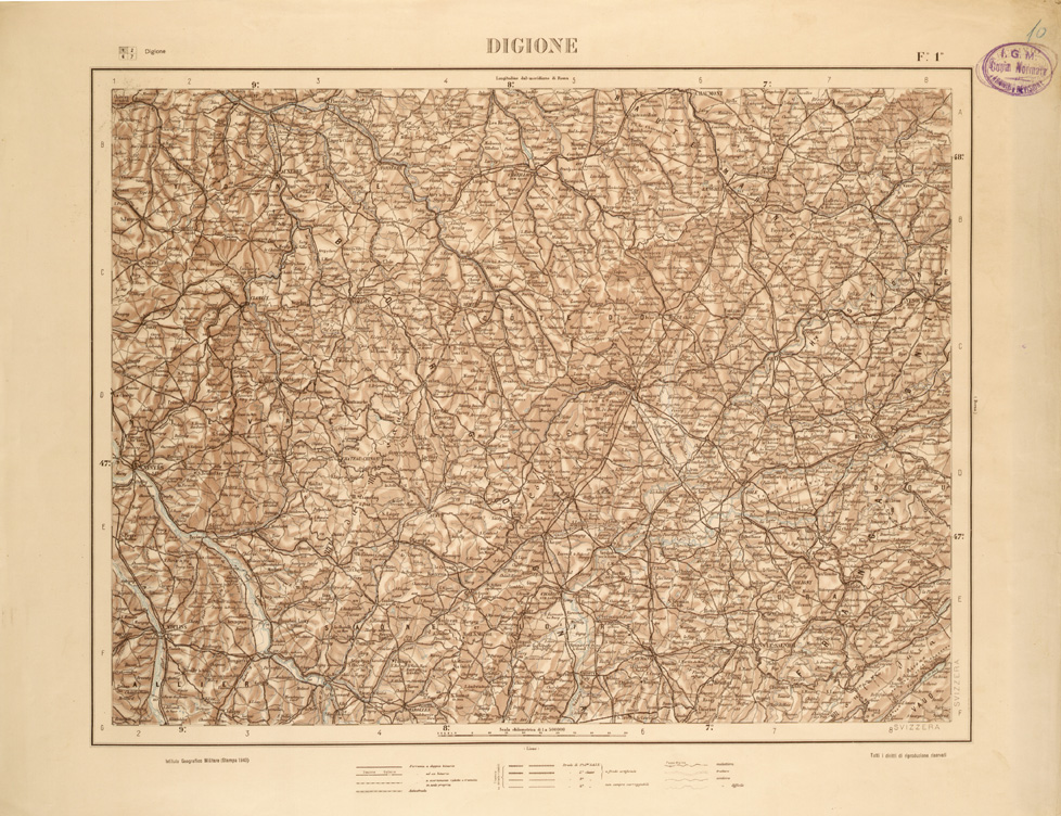 CARTA COROGRAFICA DEL REGNO D'ITALIA E DELLE REGIONI ADIACENTI EDIZIONE 1935-1937 FOGLIO 1 DIGIONE