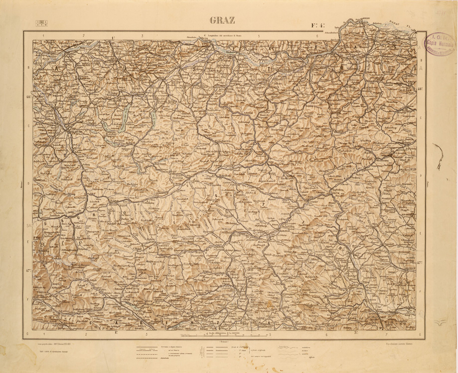 CARTA COROGRAFICA DEL REGNO D'ITALIA E DELLE REGIONI ADIACENTI EDIZIONE 1935-1937 FOGLIO 4 GRAZ
