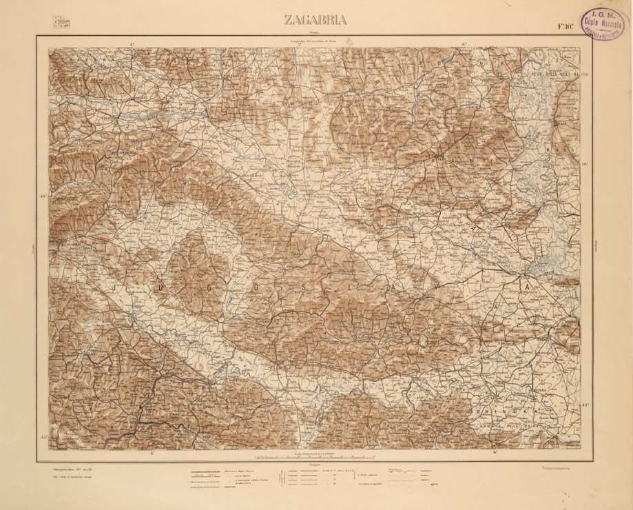 CARTA COROGRAFICA DEL REGNO D'ITALIA E DELLE REGIONI ADIACENTI EDIZIONE 1935-1937 FOGLIO 10 ZAGABRIA