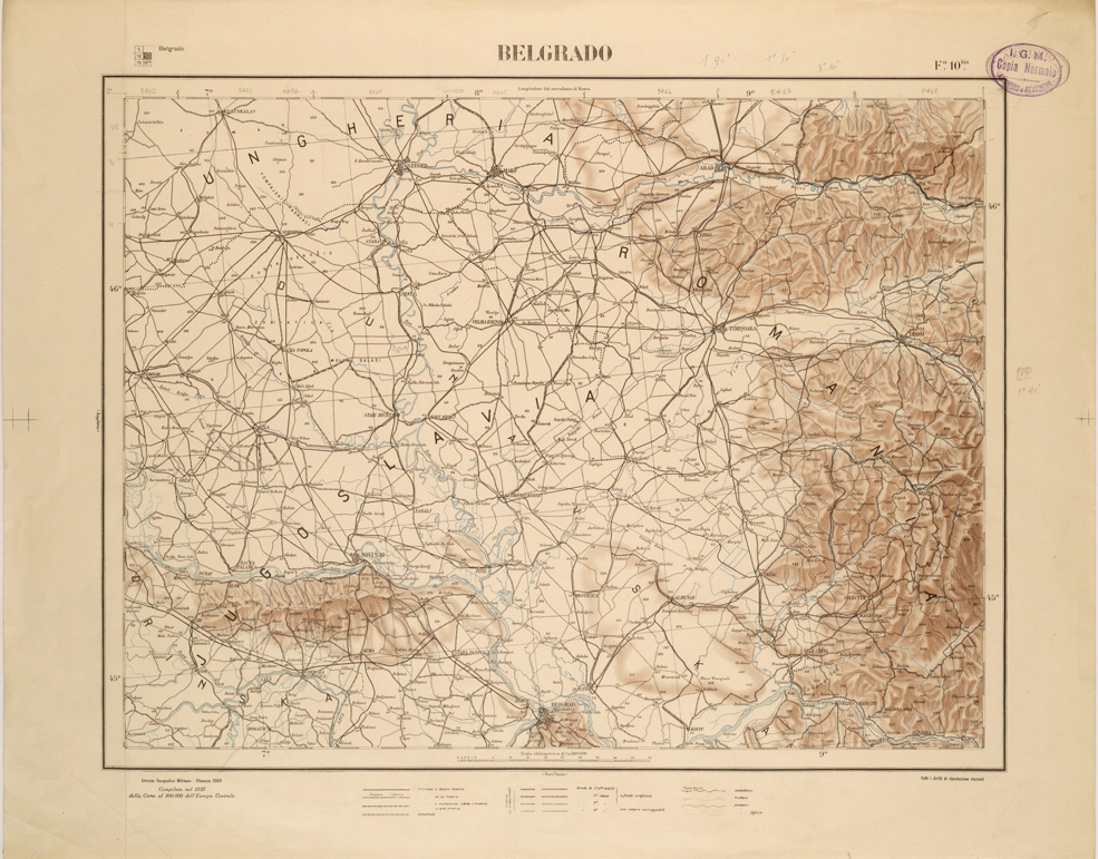 CARTA COROGRAFICA DEL REGNO D'ITALIA E DELLE REGIONI ADIACENTI EDIZIONE 1935-1937 FOGLIO 10 BIS BELGRADO