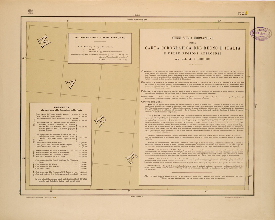 CARTA COROGRAFICA DEL REGNO D'ITALIA E DELLE REGIONI ADIACENTI EDIZIONE 1935-1937 FOGLIO 21 CENNI SULLA FORMAZIONE DELLA CARTA