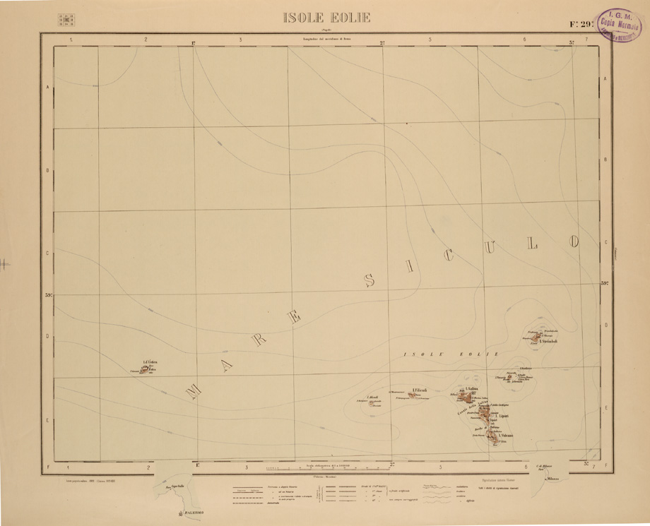 CARTA COROGRAFICA DEL REGNO D'ITALIA E DELLE REGIONI ADIACENTI EDIZIONE 1935-1937 FOGLIO 29 ISOLE EOLIE