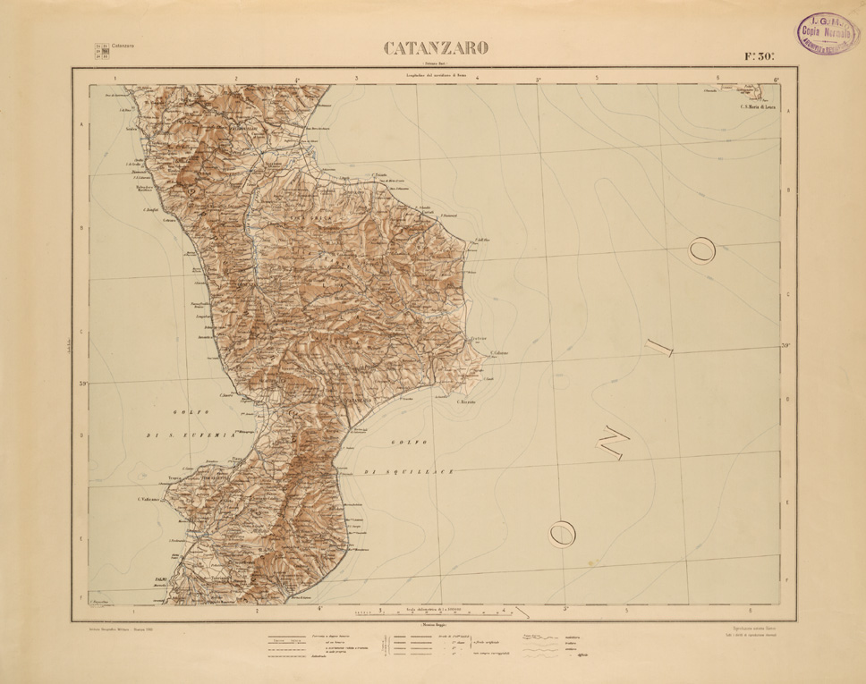 CARTA COROGRAFICA DEL REGNO D'ITALIA E DELLE REGIONI ADIACENTI EDIZIONE 1935-1937 FOGLIO 30 CATANZARO