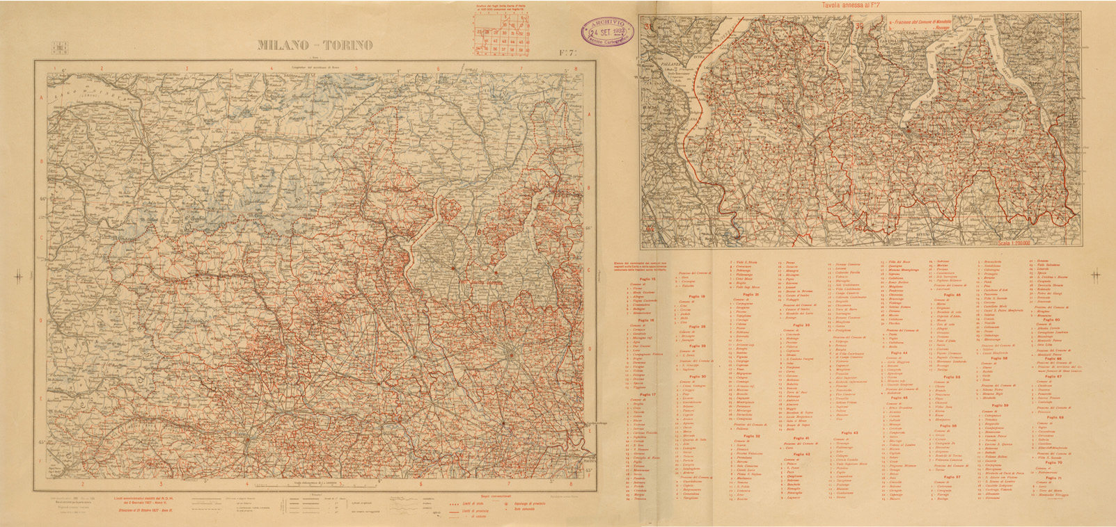 La riproduzione speditiva delle levate originali fu poi seguita dalla pubblicazione della carta artisticamente finita: 271 fogli alla scala 1:100000 che comprendevano l'intero territorio italiano