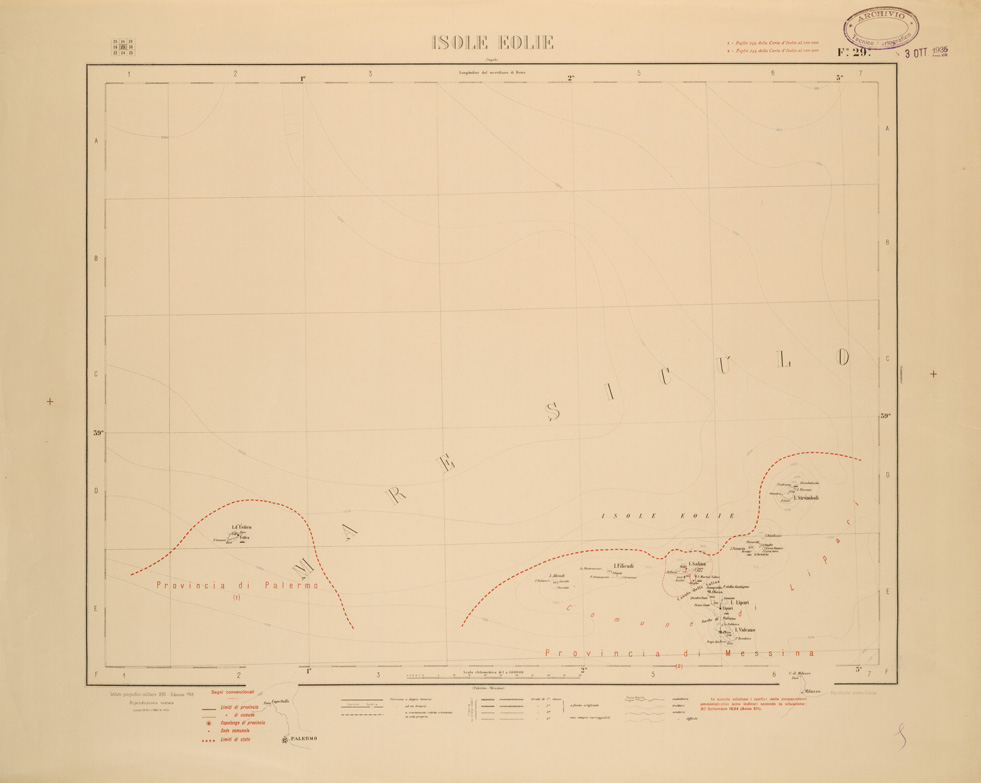 CARTA COROGRAFICA D'ITALIA FOGLIO 29 ISOLE EOLIE