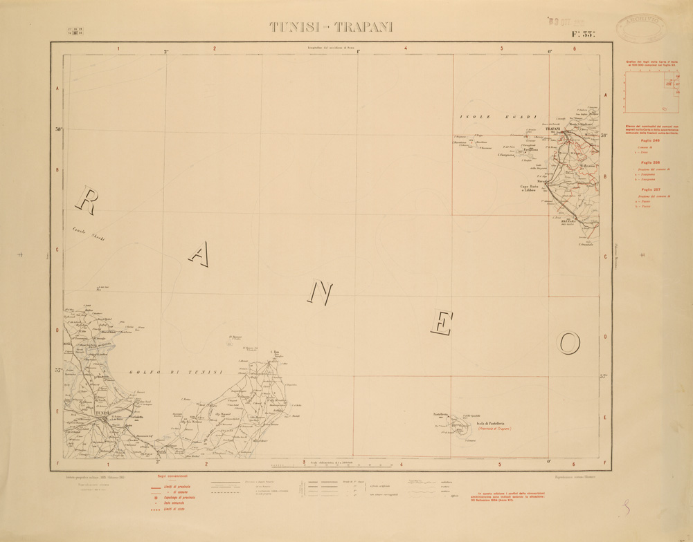 CARTA COROGRAFICA D'ITALIA FOGLIO 33 TUNISI TRAPANI