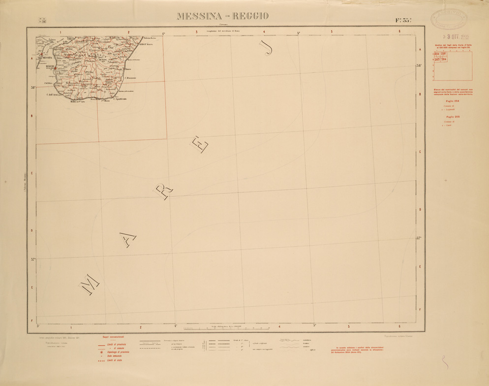 CARTA COROGRAFICA D'ITALIA FOGLIO 35 MESSINA REGGIO