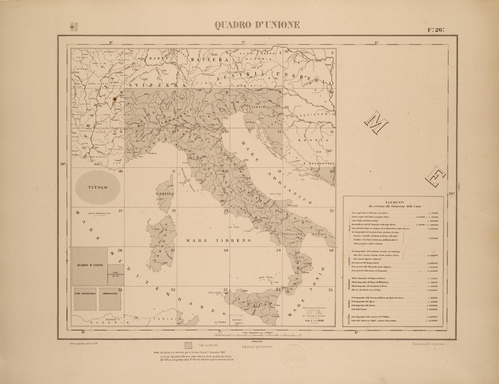 CARTA COROGRAFICA DEL REGNO D'ITALIA E DELLE REGIONI ADIACENTI FOGLIO 26 QUADRO D'UNIONE