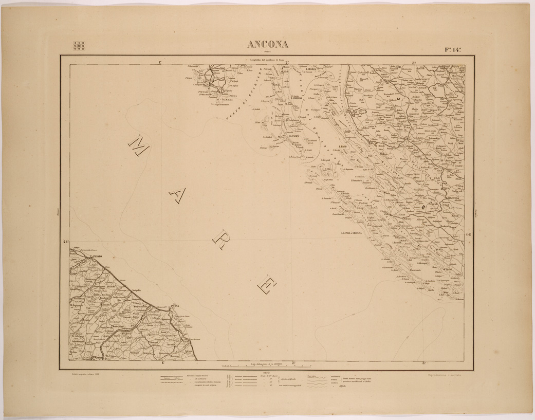 CARTA COROGRAFICA DEL REGNO D'ITALIA E DELLE REGIONI ADIACENTI FOGLIO 14 ANCONA
