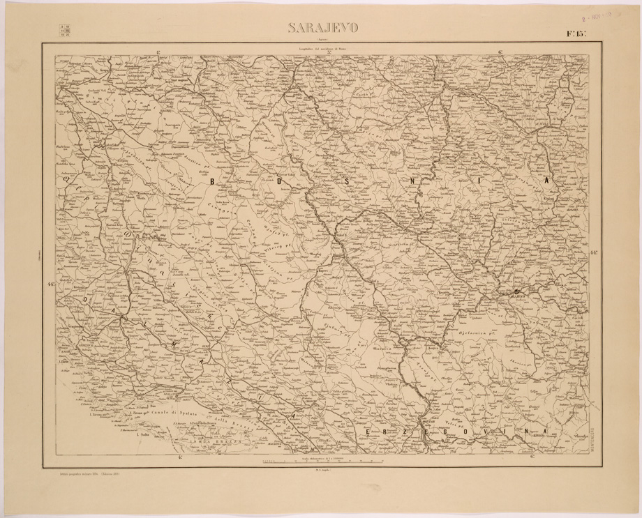 CARTA COROGRAFICA DEL REGNO D'ITALIA E DELLE REGIONI ADIACENTI FOGLIO 15 SARAJEVO