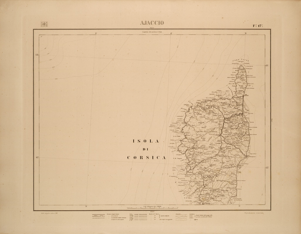CARTA COROGRAFICA DEL REGNO D'ITALIA E DELLE REGIONI ADIACENTI FOGLIO 17 AJACCIO