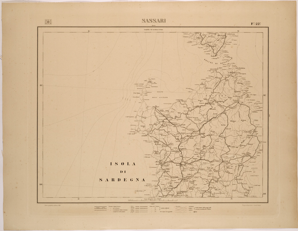 CARTA COROGRAFICA DEL REGNO D'ITALIA E DELLE REGIONI ADIACENTI FOGLIO 22 SASSARI