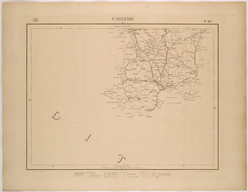 CARTA COROGRAFICA DEL REGNO D'ITALIA E DELLE REGIONI ADIACENTI FOGLIO 27 CAGLIARI
