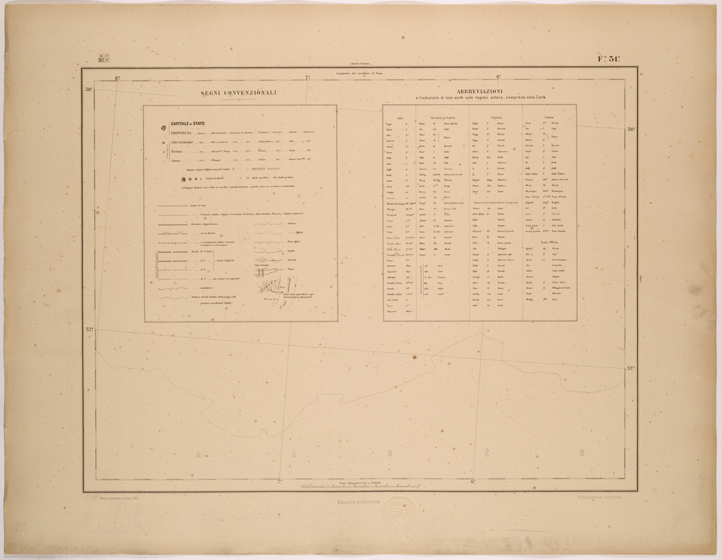 CARTA COROGRAFICA DEL REGNO D'ITALIA E DELLE REGIONI ADIACENTI FOGLIO 31 SEGNI CONVENZIONALI