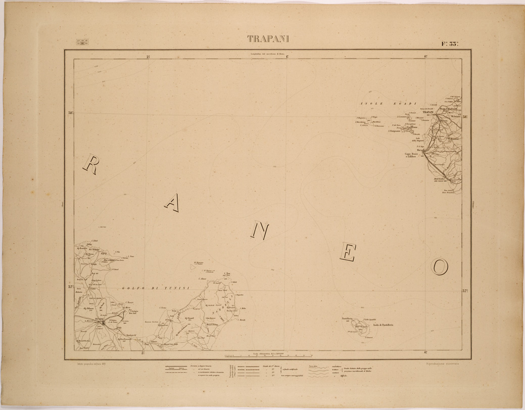 CARTA COROGRAFICA DEL REGNO D'ITALIA E DELLE REGIONI ADIACENTI FOGLIO 33 TRAPANI