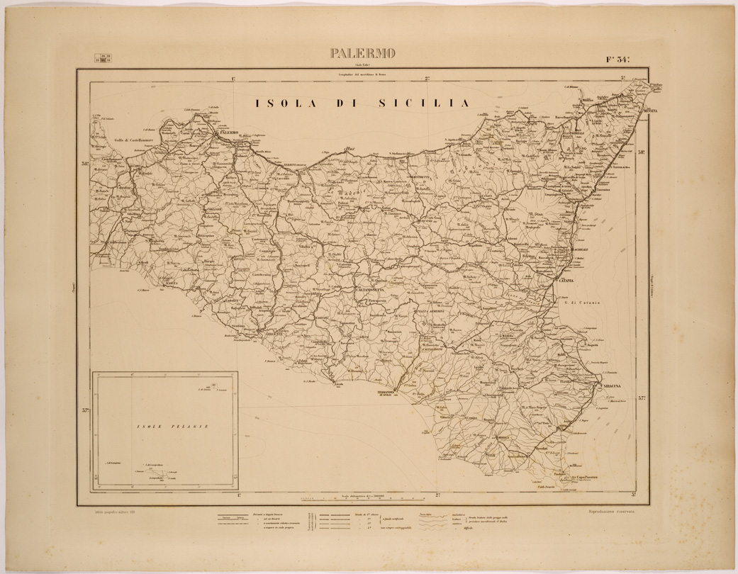 CARTA COROGRAFICA DEL REGNO D'ITALIA E DELLE REGIONI ADIACENTI FOGLIO 34 PALERMO
