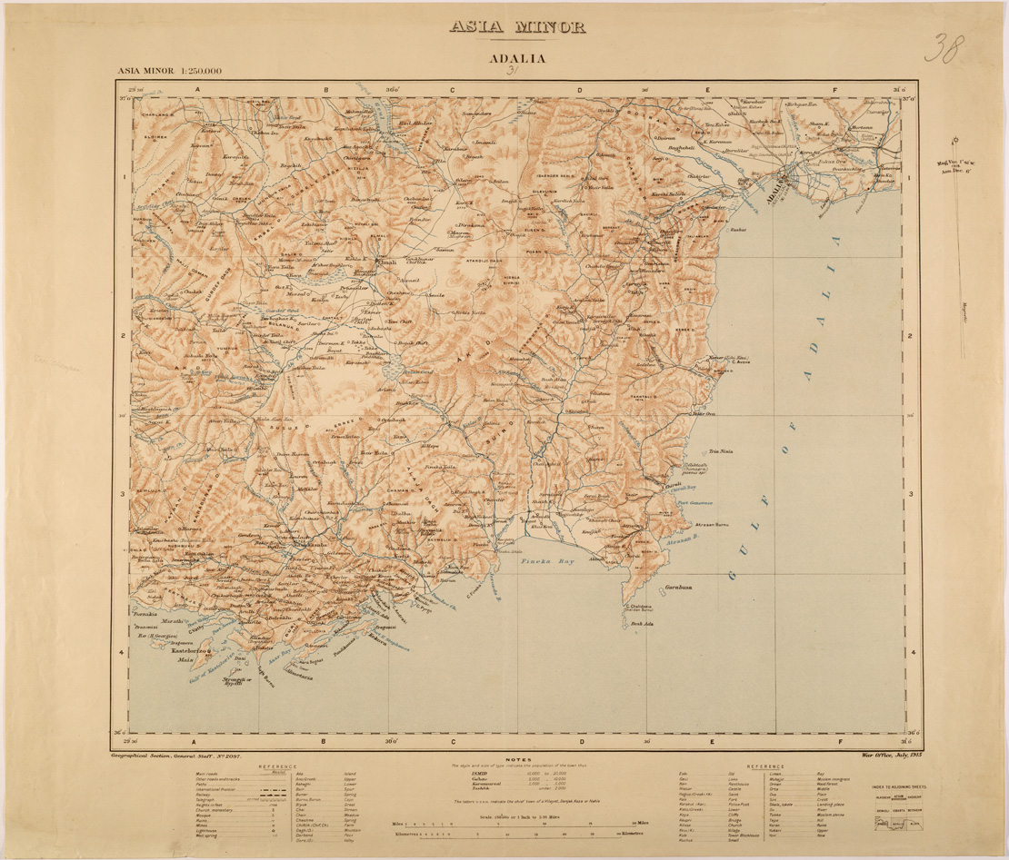 "Serie di carte dell' Asia Minore e Turchia edite dal War Office Inglese, compilate negli anni dal 1908 al 1916 presumibilmente inviate dall' Inghilterra all' Italia durante la prima guerra mondiale. ( file da SE000413 a SE000451 )"