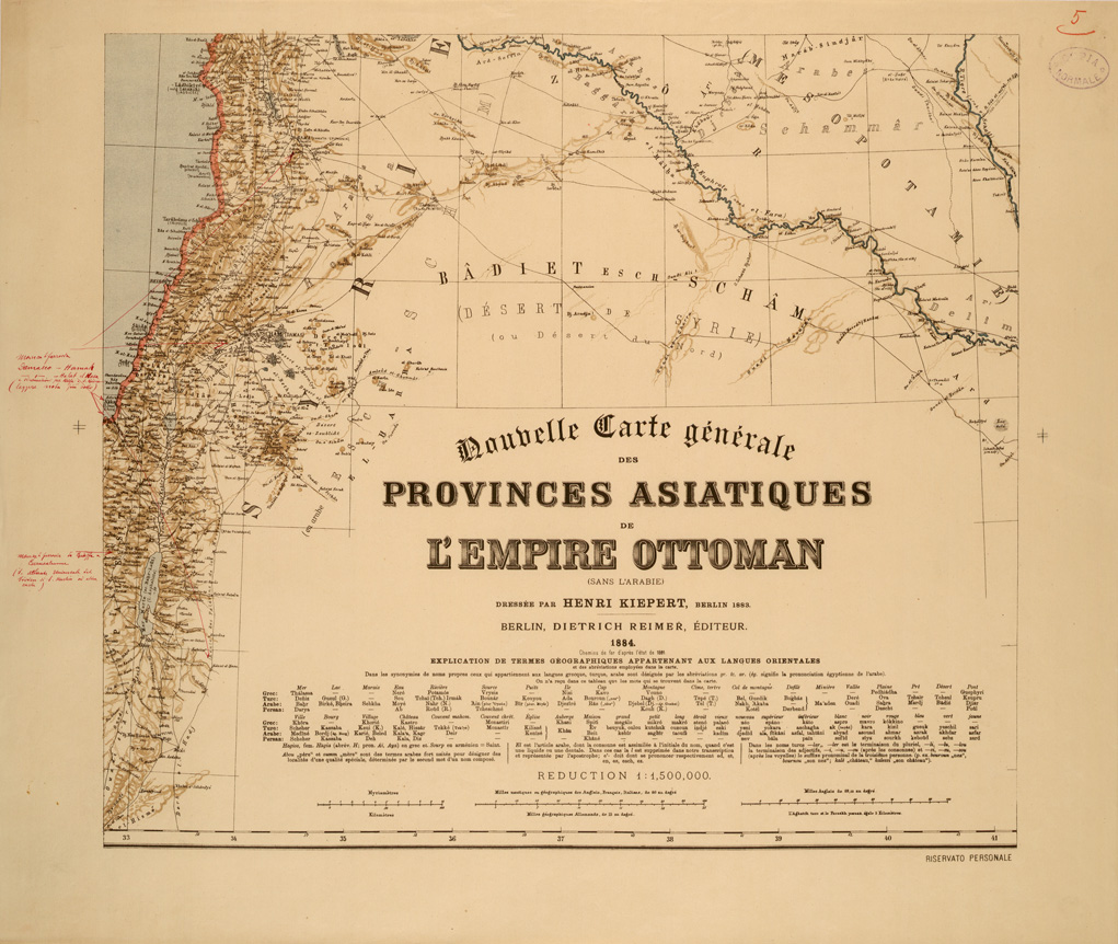"Carta compilata nel 1883 da Henri Kiepert e aggiornata parzialmente per le ferrovie nel 1891 la carta riporta, stampate in Francese, le fonti di compilazione, note sulle divisioni amministrative e la trascrizione dei nomi moderni in lingue orientali."