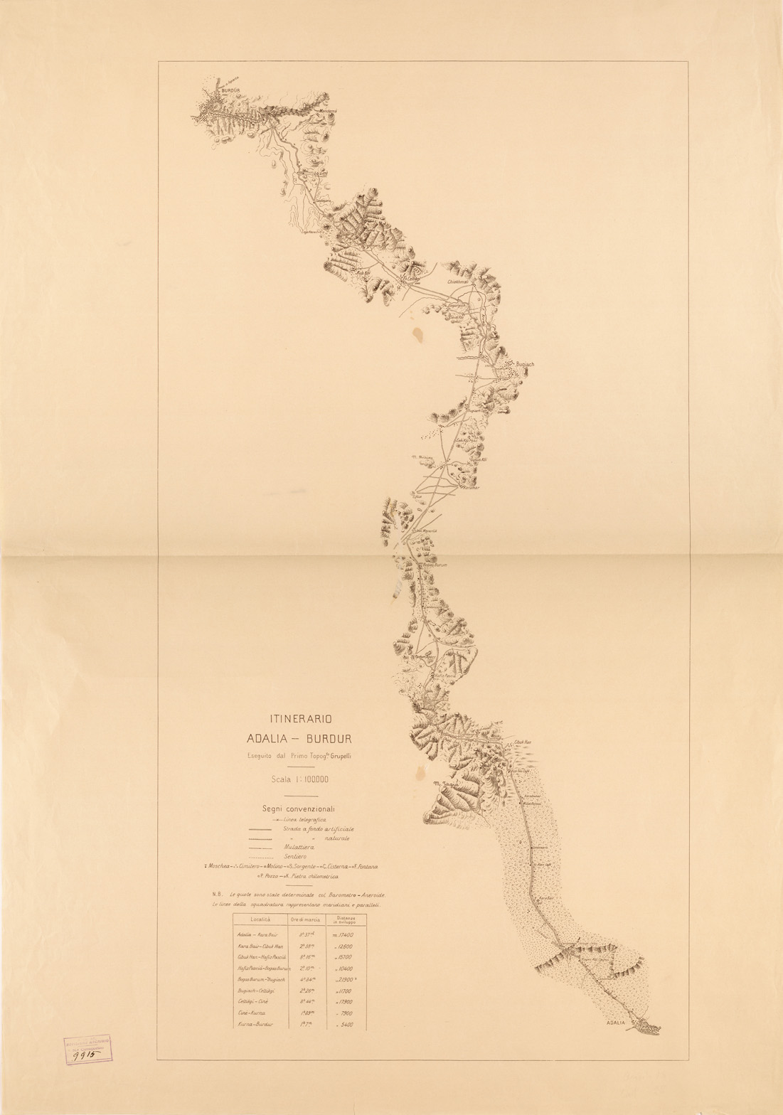 "Rilievo speditivo rappresentante l' itinerario percorso nel 1919 dal 1° topografo Grupelli"