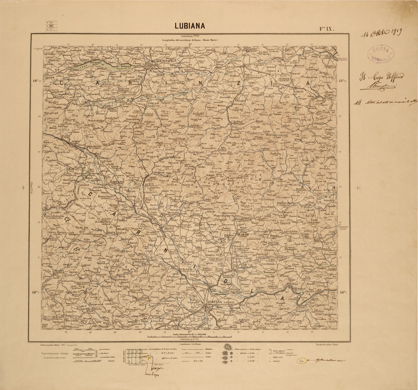 CARTA DEL REGNO D'ITALIA AL 200.000 FOGLIO IX LUBIANA