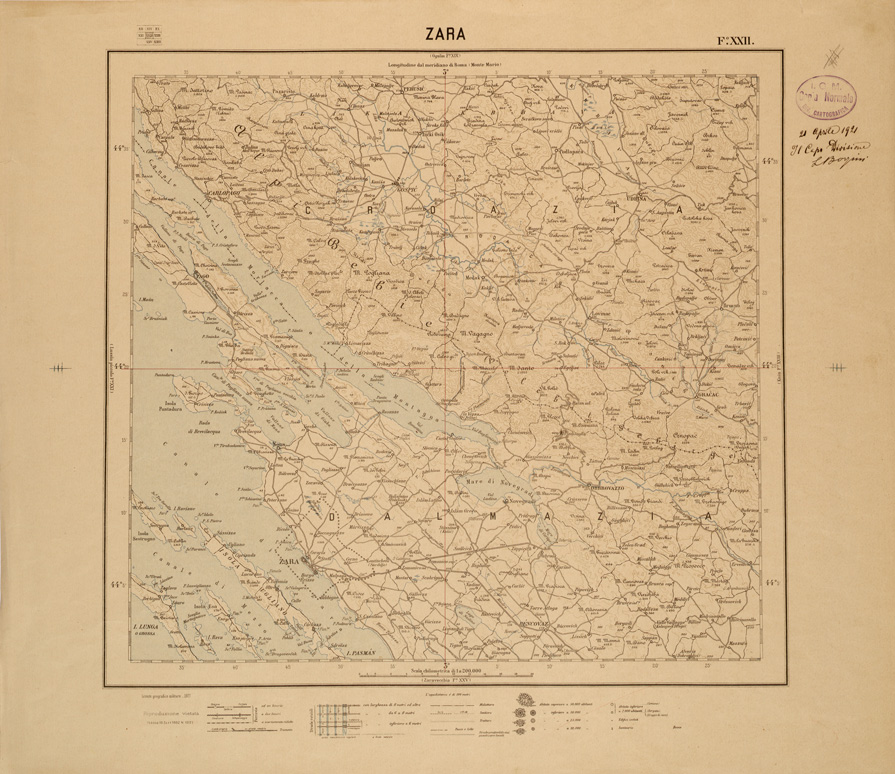 CARTA DEL REGNO D'ITALIA AL 200.000 FOGLIO XXII ZARA