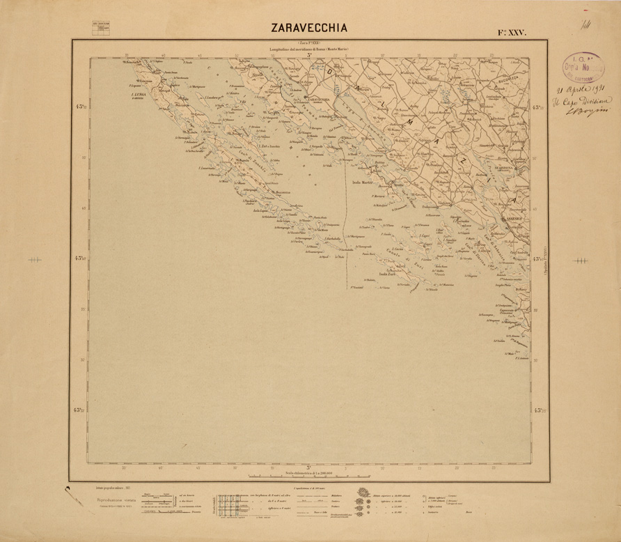 CARTA DEL REGNO D'ITALIA AL 200.000 FOGLIO XXV ZARAVECCHIA
