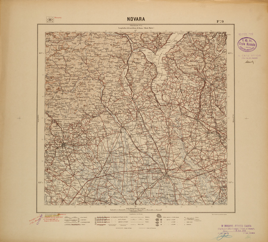 CARTA DEL REGNO D'ITALIA AL 200.000 FOGLIO 9 NOVARA