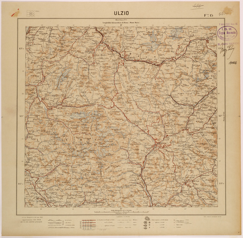 CARTA DEL REGNO D'ITALIA AL 200.000 FOGLIO 15 ULZIO OULX