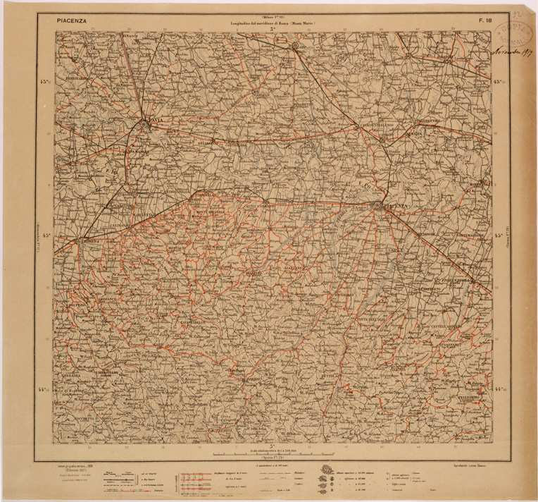 CARTA DEL REGNO D'ITALIA AL 200.000 FOGLIO 18 PIACENZA