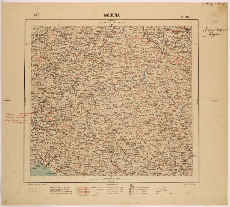 CARTA DEL REGNO D'ITALIA AL 200.000 FOGLIO 26 MODENA