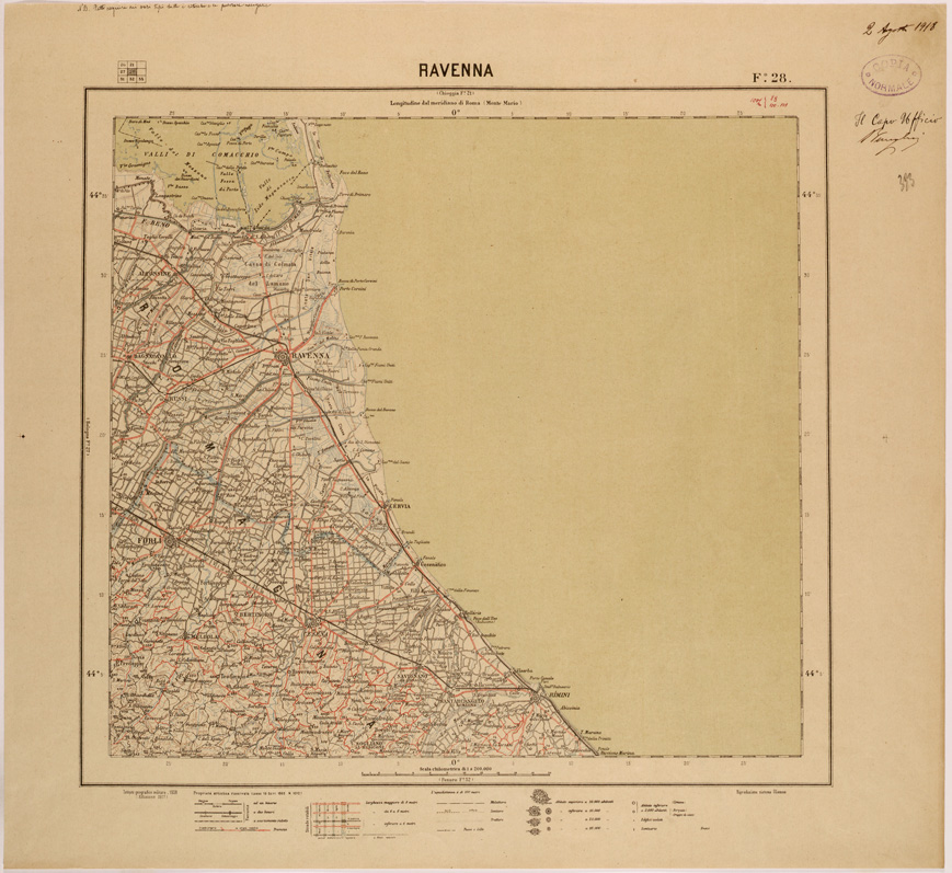 CARTA DEL REGNO D'ITALIA AL 200.000 FOGLIO 28 RAVENNA