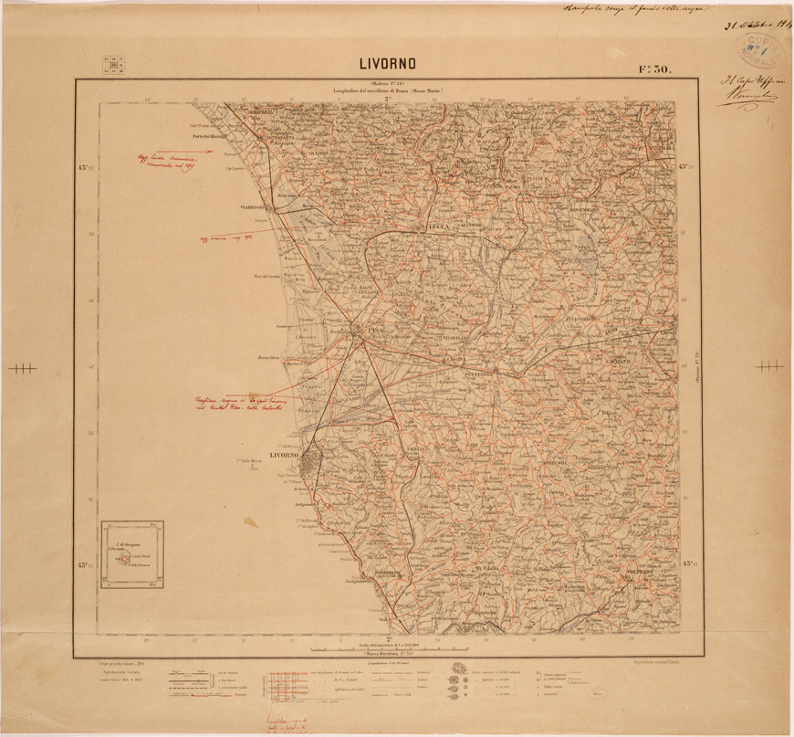 CARTA DEL REGNO D'ITALIA AL 200.000 FOGLIO 30 LIVORNO
