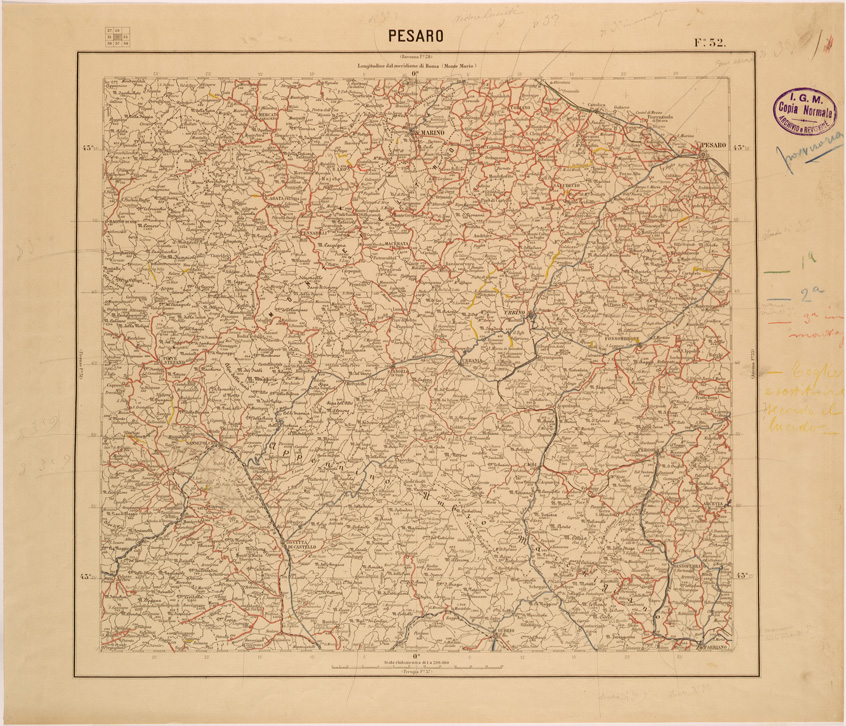 CARTA DEL REGNO D'ITALIA AL 200.000 FOGLIO 32 PESARO