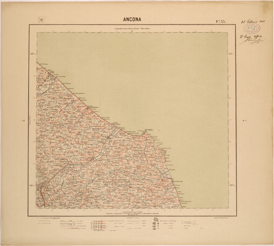 CARTA DEL REGNO D'ITALIA AL 200.000 FOGLIO 33 ANCONA