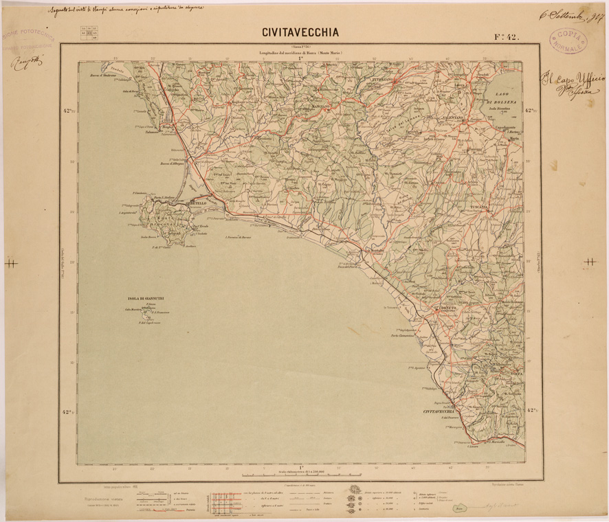 CARTA DEL REGNO D'ITALIA AL 200.000 FOGLIO 42 CIVITAVECCHIA