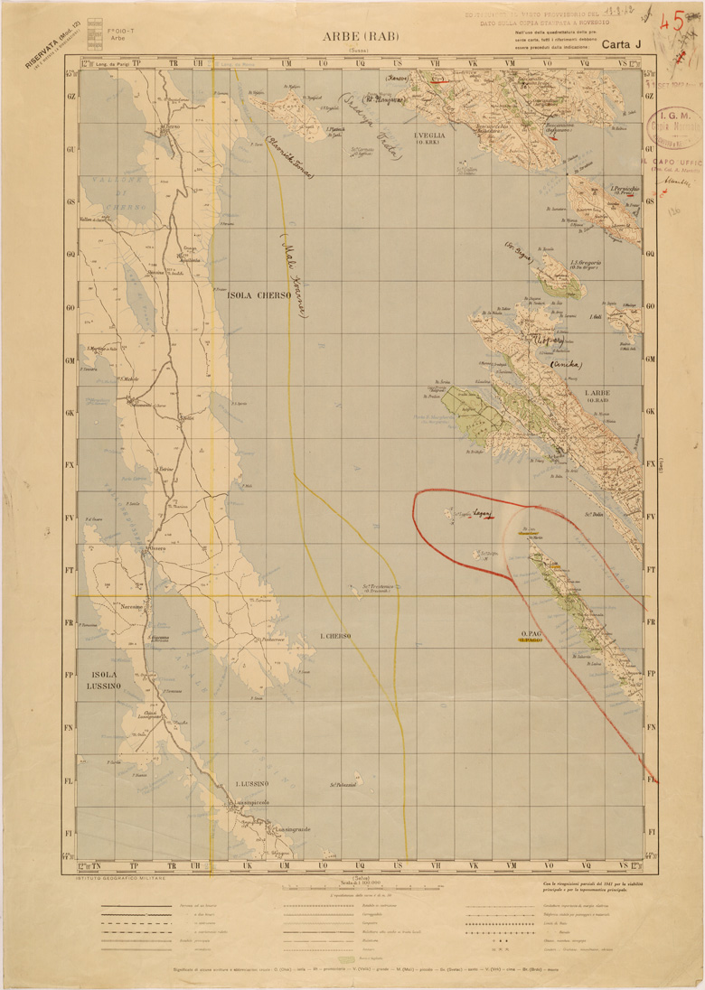 "Carta compilata dalla divisione cartografica dell' IGM dal Settembre 1939 ad Aprile 1940 con aggiornamenti del 1941 per viabilità e toponomastica, gli originali furono ricavati dal ridisegno della carta Jugoslava alla stessa scala traducendo i toponimi originali, in parte Latini in parte Cirillici. Lavoro ordinato dal Comando di Stato Maggiore per le Forze Armate operanti nella zona."