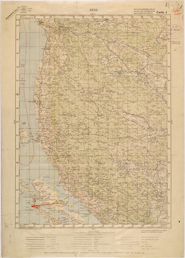 "Carta compilata dalla divisione cartografica dell' IGM dal Settembre 1939 ad Aprile 1940 con aggiornamenti del 1941 per viabilità e toponomastica, gli originali furono ricavati dal ridisegno della carta Jugoslava alla stessa scala traducendo i toponimi originali, in parte Latini in parte Cirillici. Lavoro ordinato dal Comando di Stato Maggiore per le Forze Armate operanti nella zona."