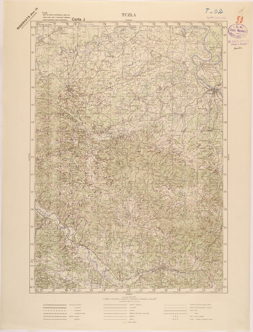 "Carta compilata dalla divisione cartografica dell' IGM dal Settembre 1939 ad Aprile 1940 con aggiornamenti del 1941 per viabilità e toponomastica, gli originali furono ricavati dal ridisegno della carta Jugoslava alla stessa scala traducendo i toponimi originali, in parte Latini in parte Cirillici. Lavoro ordinato dal Comando di Stato Maggiore per le Forze Armate operanti nella zona."