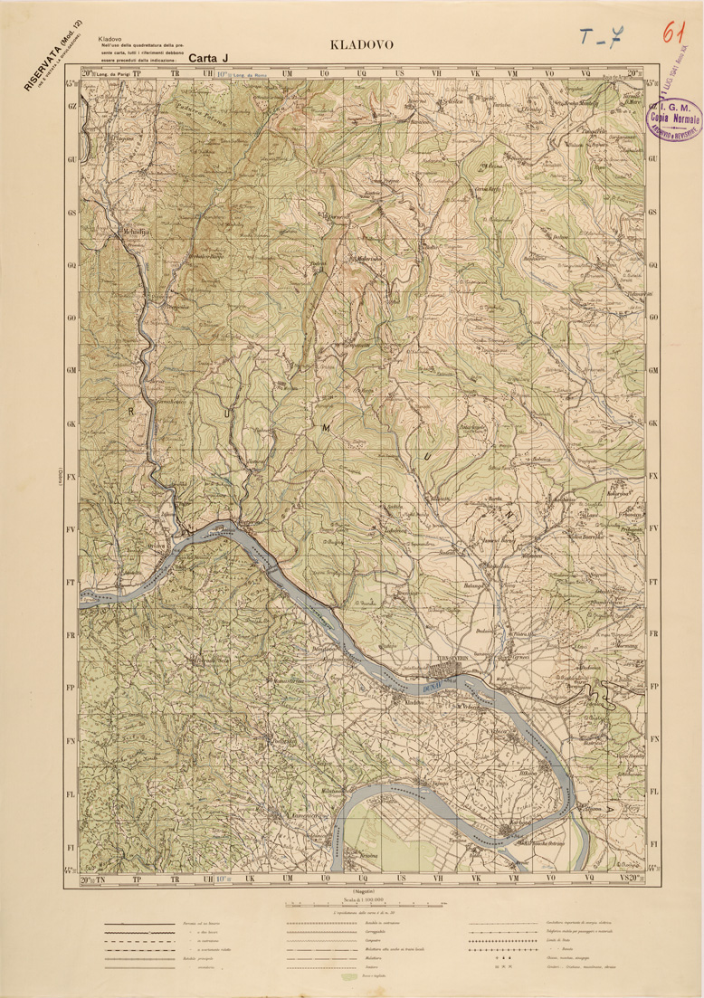 "Carta compilata dalla divisione cartografica dell' IGM dal Settembre 1939 ad Aprile 1940 con aggiornamenti del 1941 per viabilità e toponomastica, gli originali furono ricavati dal ridisegno della carta Jugoslava alla stessa scala traducendo i toponimi originali, in parte Latini in parte Cirillici. Lavoro ordinato dal Comando di Stato Maggiore per le Forze Armate operanti nella zona."
