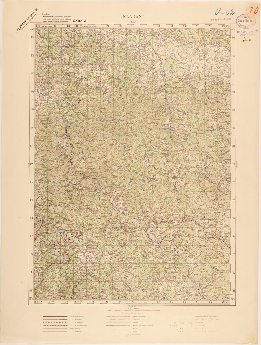 "Carta compilata dalla divisione cartografica dell' IGM dal Settembre 1939 ad Aprile 1940 con aggiornamenti del 1941 per viabilità e toponomastica, gli originali furono ricavati dal ridisegno della carta Jugoslava alla stessa scala traducendo i toponimi originali, in parte Latini in parte Cirillici. Lavoro ordinato dal Comando di Stato Maggiore per le Forze Armate operanti nella zona."