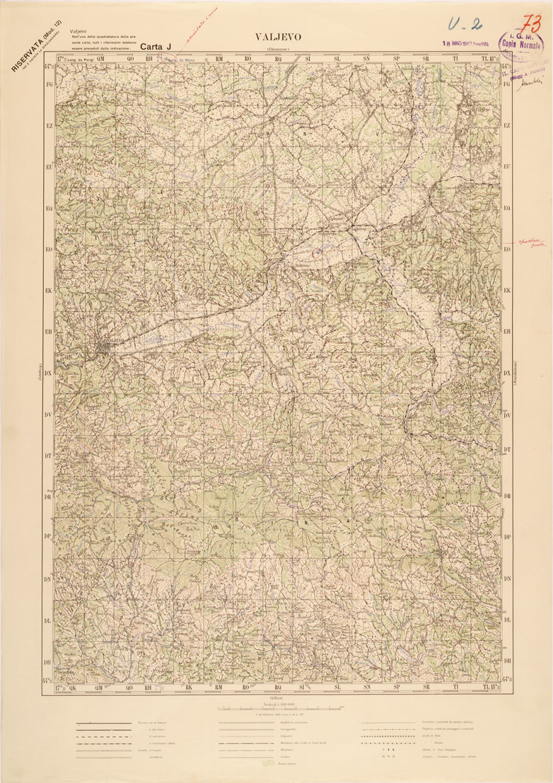 "Carta compilata dalla divisione cartografica dell' IGM dal Settembre 1939 ad Aprile 1940 con aggiornamenti del 1941 per viabilità e toponomastica, gli originali furono ricavati dal ridisegno della carta Jugoslava alla stessa scala traducendo i toponimi originali, in parte Latini in parte Cirillici. Lavoro ordinato dal Comando di Stato Maggiore per le Forze Armate operanti nella zona."
