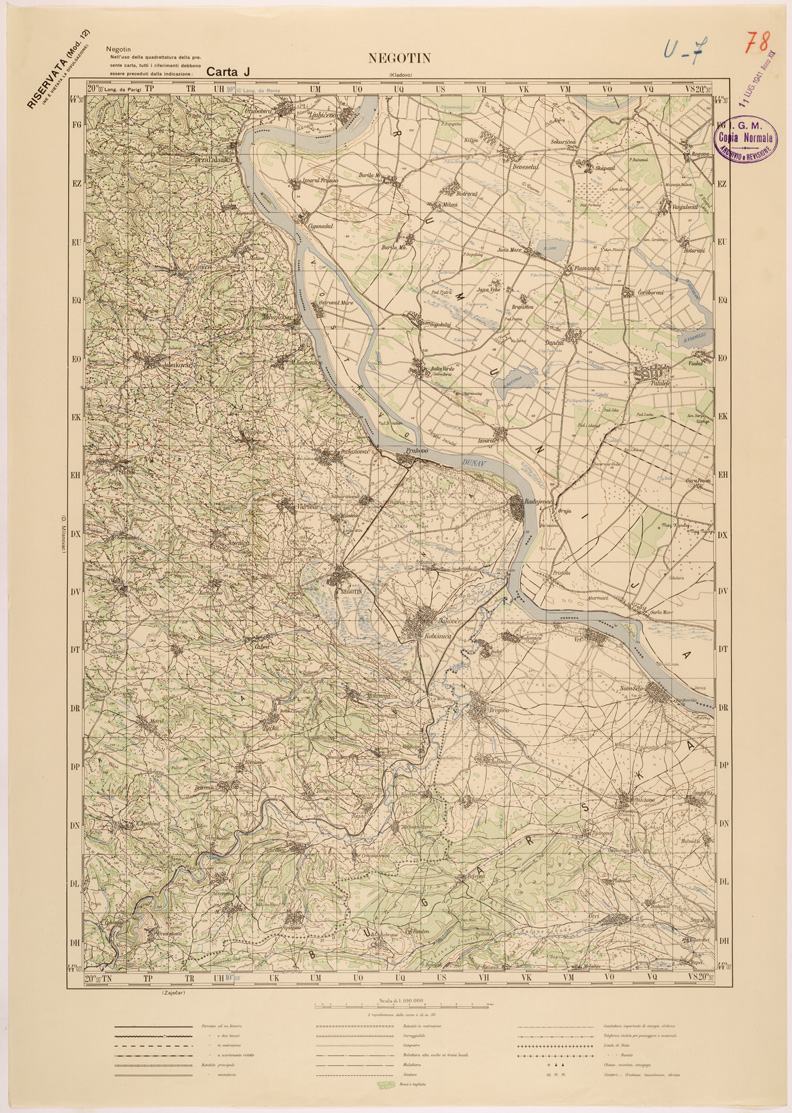 "Carta compilata dalla divisione cartografica dell' IGM dal Settembre 1939 ad Aprile 1940 con aggiornamenti del 1941 per viabilità e toponomastica, gli originali furono ricavati dal ridisegno della carta Jugoslava alla stessa scala traducendo i toponimi originali, in parte Latini in parte Cirillici. Lavoro ordinato dal Comando di Stato Maggiore per le Forze Armate operanti nella zona."