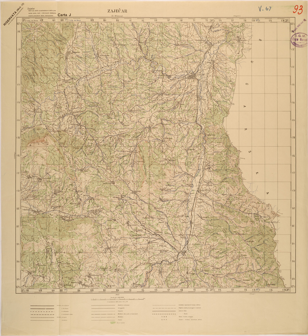"Carta compilata dalla divisione cartografica dell' IGM dal Settembre 1939 ad Aprile 1940 con aggiornamenti del 1941 per viabilità e toponomastica, gli originali furono ricavati dal ridisegno della carta Jugoslava alla stessa scala traducendo i toponimi originali, in parte Latini in parte Cirillici. Lavoro ordinato dal Comando di Stato Maggiore per le Forze Armate operanti nella zona."