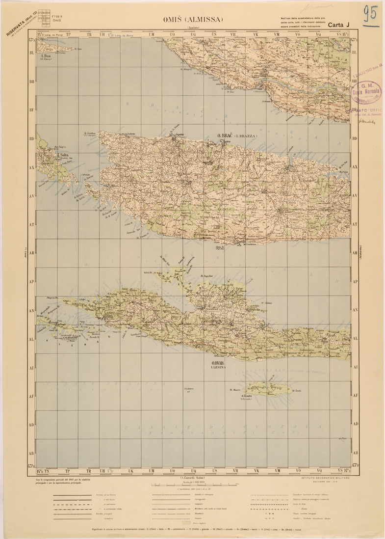 "Carta compilata dalla divisione cartografica dell' IGM dal Settembre 1939 ad Aprile 1940 con aggiornamenti del 1941 per viabilità e toponomastica, gli originali furono ricavati dal ridisegno della carta Jugoslava alla stessa scala traducendo i toponimi originali, in parte Latini in parte Cirillici. Lavoro ordinato dal Comando di Stato Maggiore per le Forze Armate operanti nella zona."