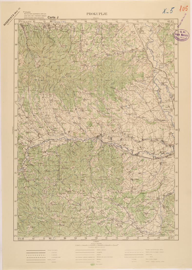 "Carta compilata dalla divisione cartografica dell' IGM dal Settembre 1939 ad Aprile 1940 con aggiornamenti del 1941 per viabilità e toponomastica, gli originali furono ricavati dal ridisegno della carta Jugoslava alla stessa scala traducendo i toponimi originali, in parte Latini in parte Cirillici. Lavoro ordinato dal Comando di Stato Maggiore per le Forze Armate operanti nella zona."