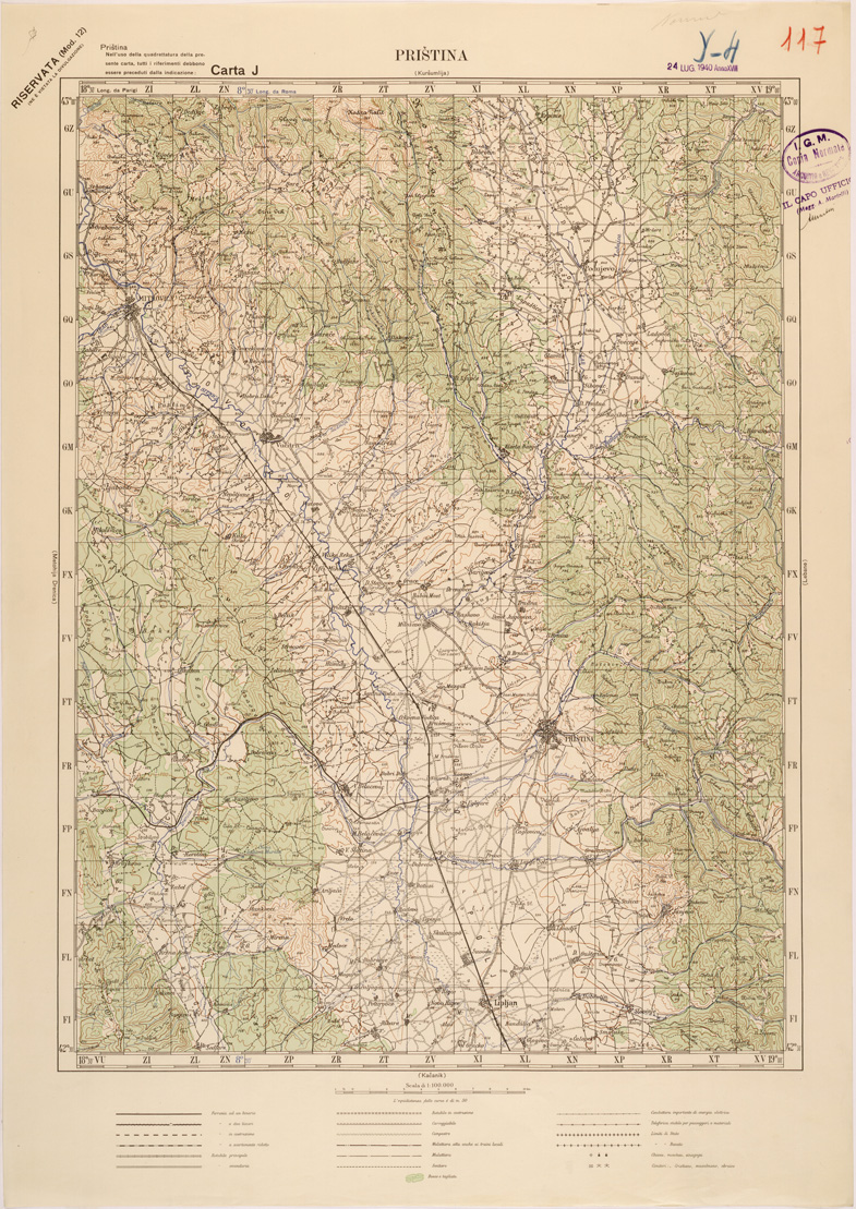 "Carta compilata dalla divisione cartografica dell' IGM dal Settembre 1939 ad Aprile 1940 con aggiornamenti del 1941 per viabilità e toponomastica, gli originali furono ricavati dal ridisegno della carta Jugoslava alla stessa scala traducendo i toponimi originali, in parte Latini in parte Cirillici. Lavoro ordinato dal Comando di Stato Maggiore per le Forze Armate operanti nella zona."