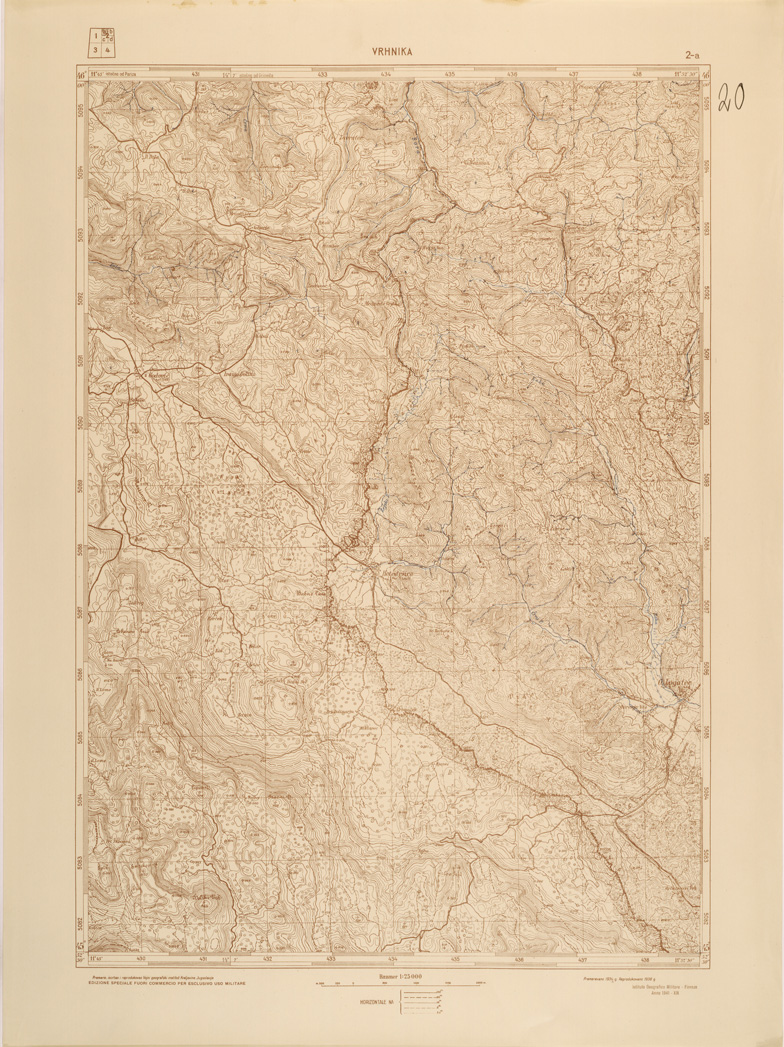 "Riproduzione IGM del 1941 di analoga carta Jugoslava rilevata negli anni dal 1934 al 1936"