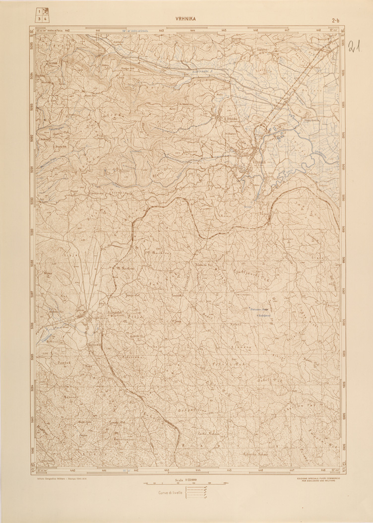 "Riproduzione IGM del 1941 di analoga carta Jugoslava rilevata negli anni dal 1934 al 1936"