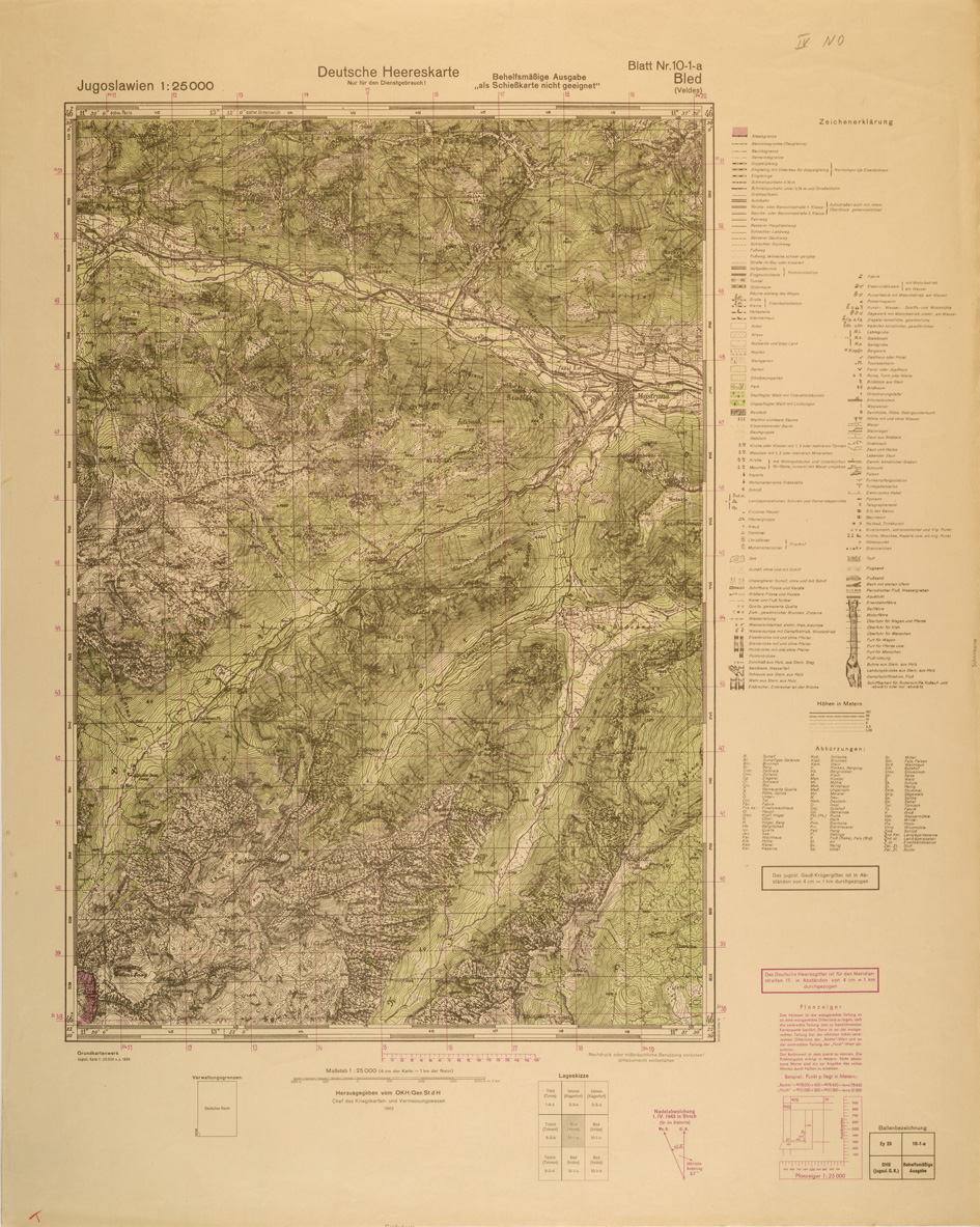 "Riproduzione allestita nel 1943 dall' Istituto Geografico Tedesco di analoga carta Jugoslava rilevata negli anni dal 1934 al 1937"