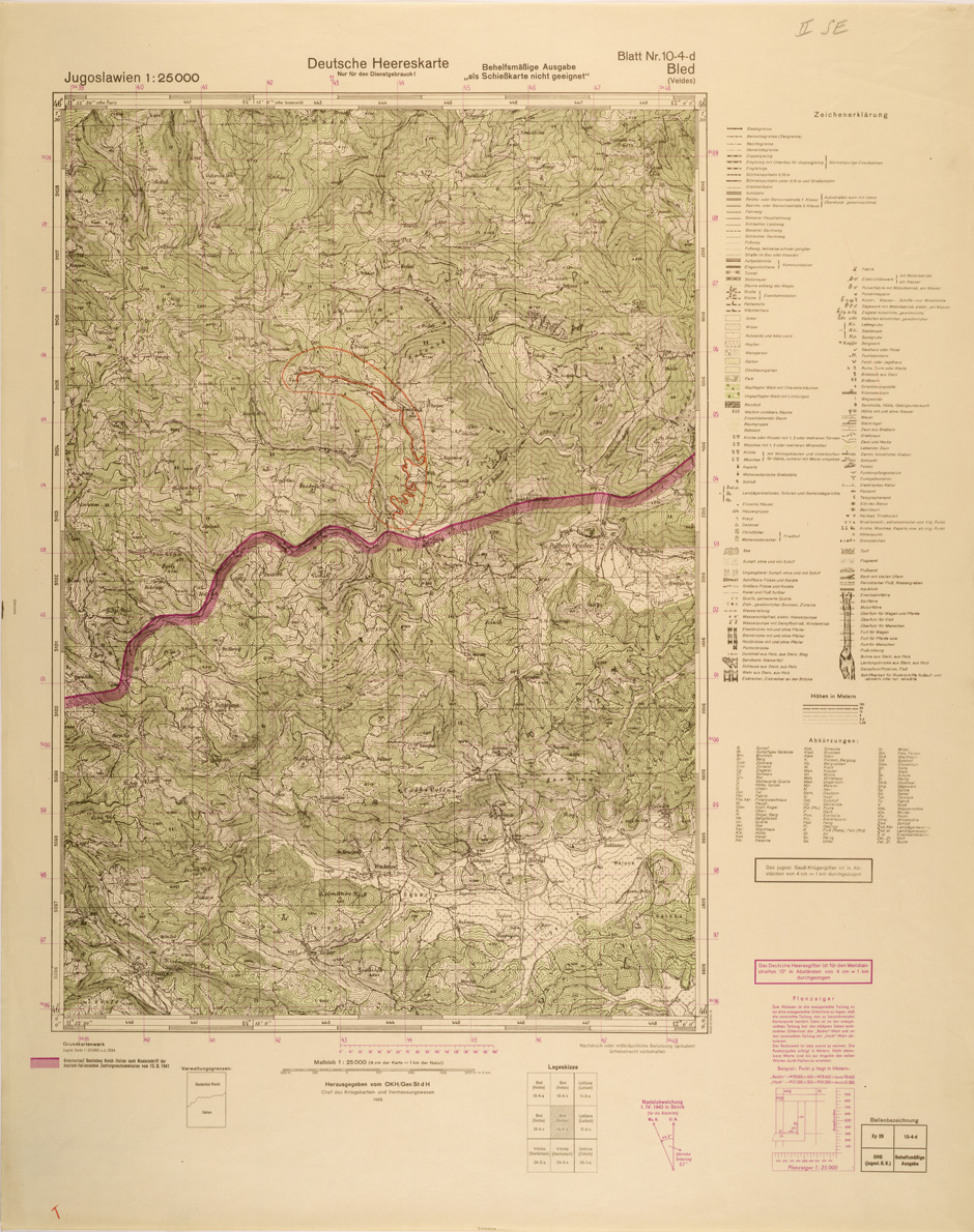 "Riproduzione allestita nel 1943 dall' Istituto Geografico Tedesco di analoga carta Jugoslava rilevata negli anni dal 1934 al 1937"